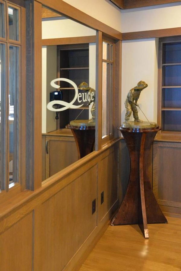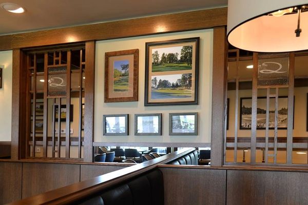 Eye Candy Gallery, in collaboration with Glavé & Holmes Architecture and the Tufts Archives in the Village of Pinehurst, provided all the printing, framing and etched glass work for this gorgeous restaurant at the Pinehurst Resort. All of the images relate to the history of Pinehurst's famous No. 2 Course and the design includes a wall dedicated to the memory of Payne Stewart. The restaurant and bar are open to the public.